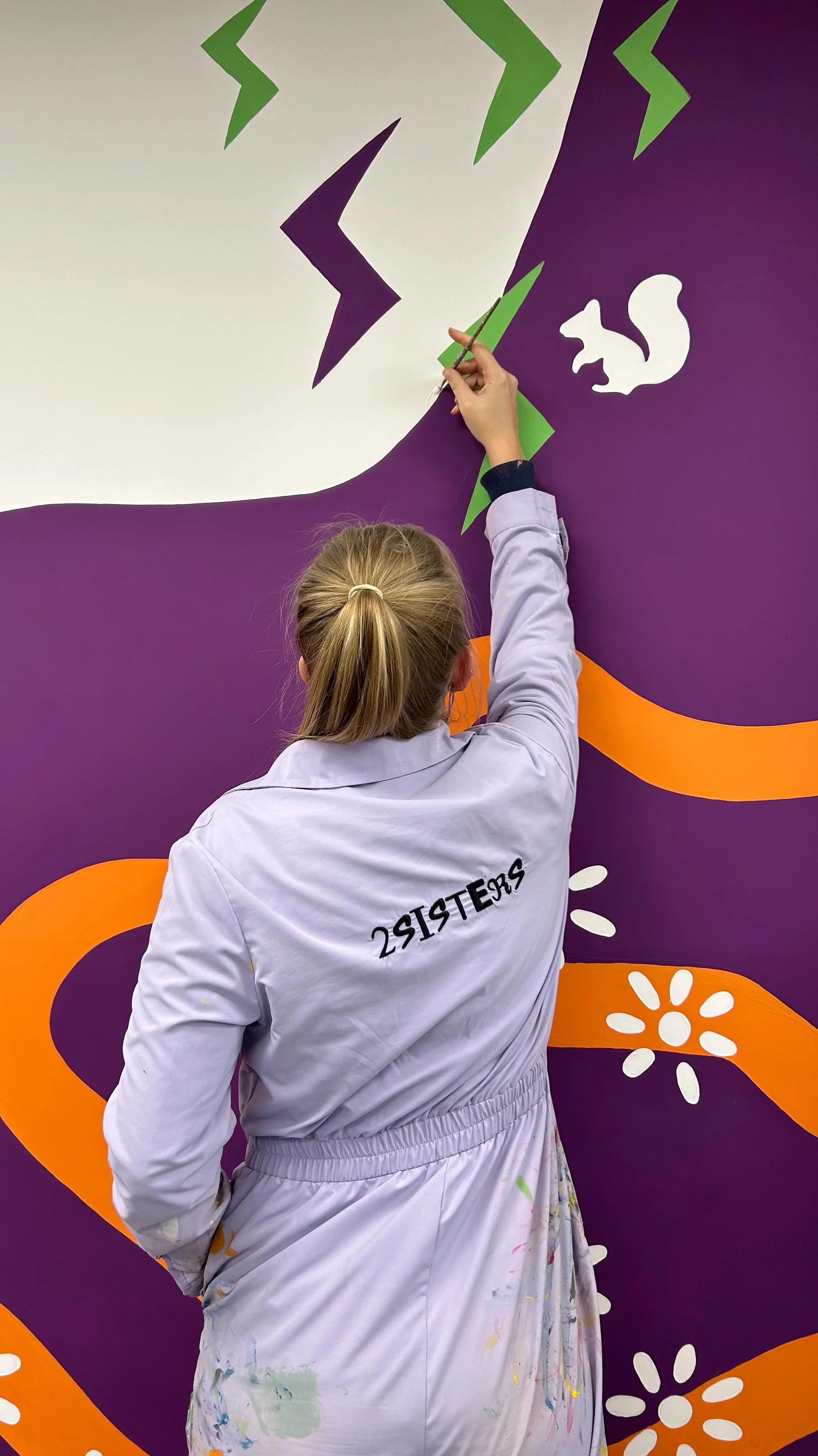 We’re 2 Sisters, an award winning design studio based in Hampshire, UK specialising in hand painted murals and graphic design. We work in a wide variety of materials and are known for our hand-painted pieces and eye-catching designs. We have created work for clients such as FatFace, l’oreal, Hilton, Shutterstock, weleda, ASK ITALIAN, and Openreach.